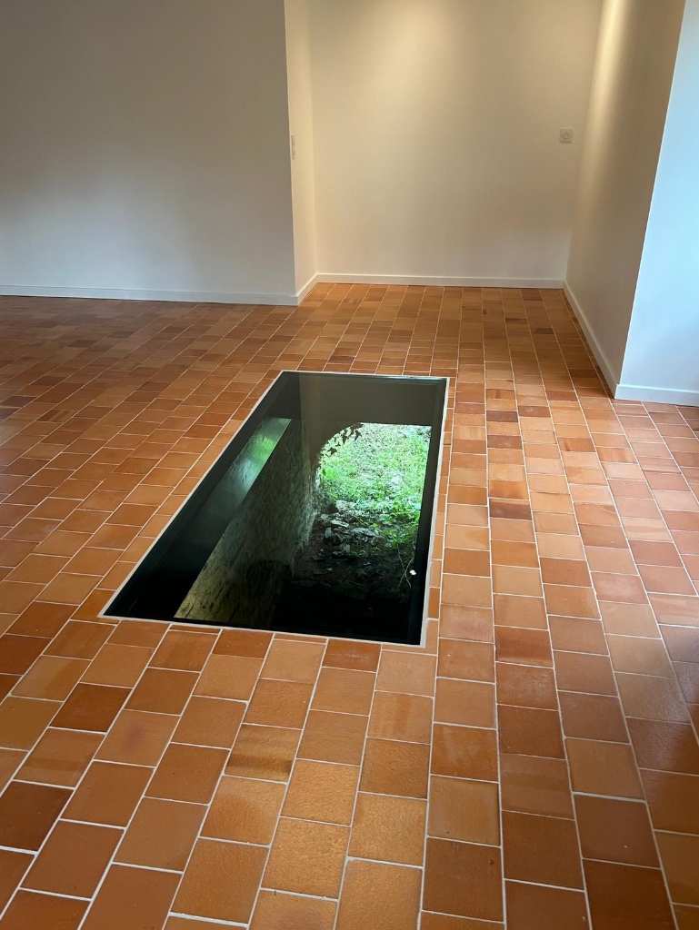 Nos maçons ont pris en charge toute la maçonnerie, en prévoyant une réservation spécifique pour accueillir le carreau, tandis que nos carreleurs ont posé les tomettes en finition, apportant un cachet supplémentaire à ce lieu.