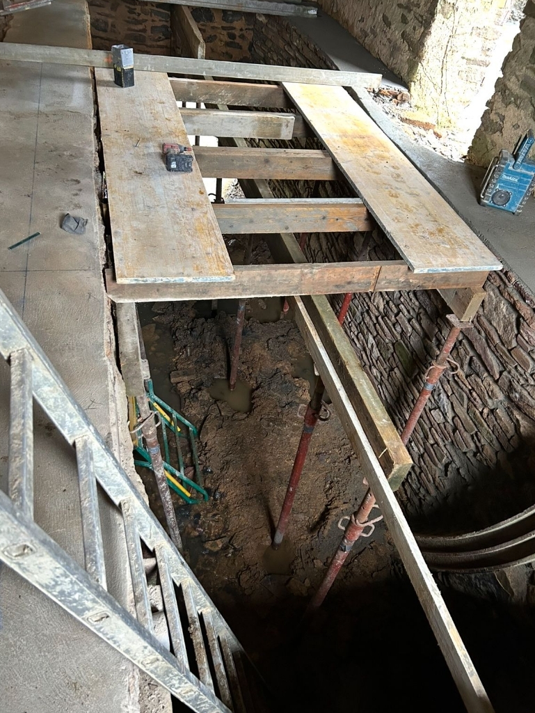 Un chantier alliant précision et savoir-faire traditionnel. Nos équipes ont réalisé la restauration de l’intérieur d’un ancien moulin. La particularité de ce projet réside dans la mise en place d’un carreau de verre au-dessus du passage d’eau, intégrée directement au cœur de la maison.